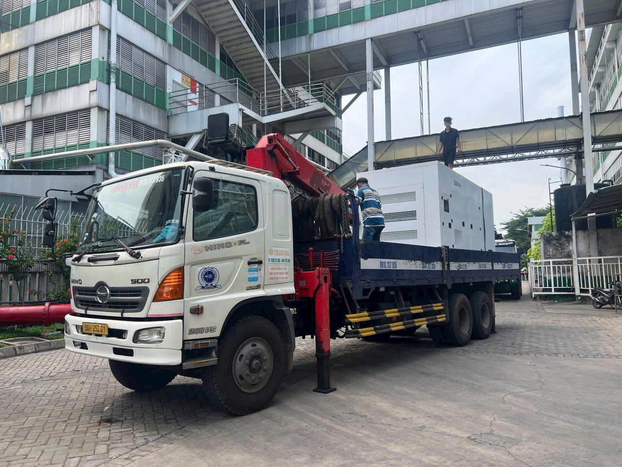 Xe cẩu Thanh Nhã vận chuyển máy phát điện tại KCN