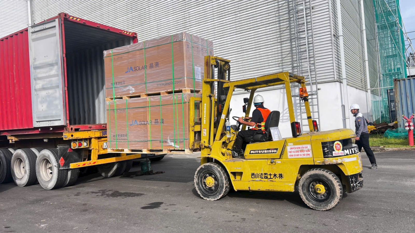 - Khi triển khai một dự án điện mặt trời (dù là mái nhà dân dụng hay farm lớn), khâu logistics - bốc dỡ - di chuyển kiện pin rất quan trọng, bởi: