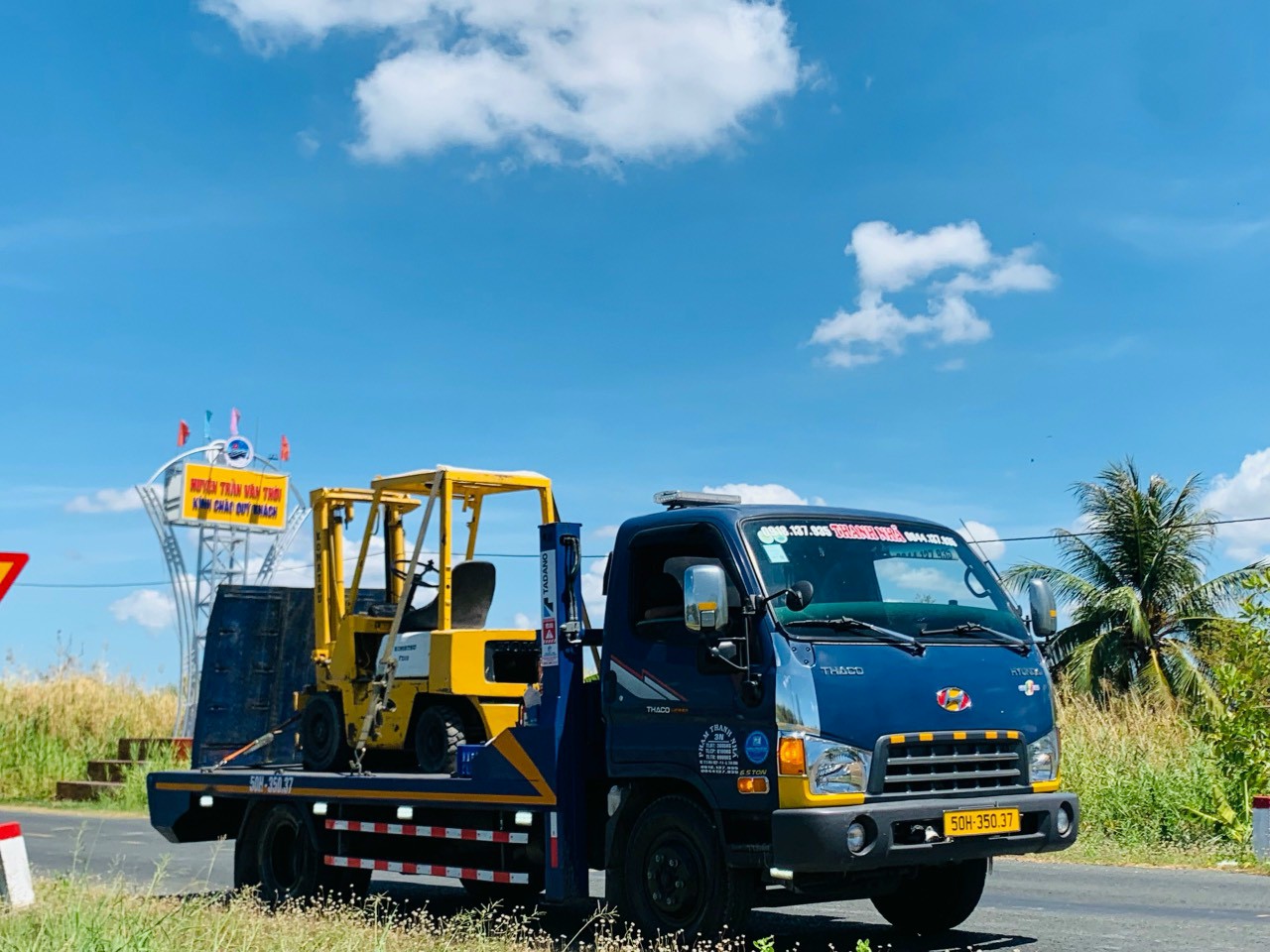 Hình ảnh xe cẩu vận chuyển xe nâng giao khách Vĩnh Long