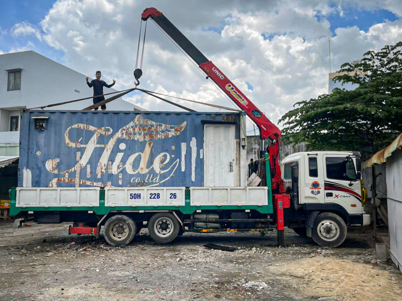 Hình ảnh xe cẩu đang chuẩn bị giao hàng đi tỉnh