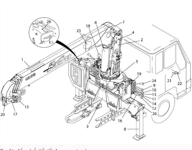 3. Liên kết cần cẩu thủy lực và xe cơ sởụm b4. Cum·