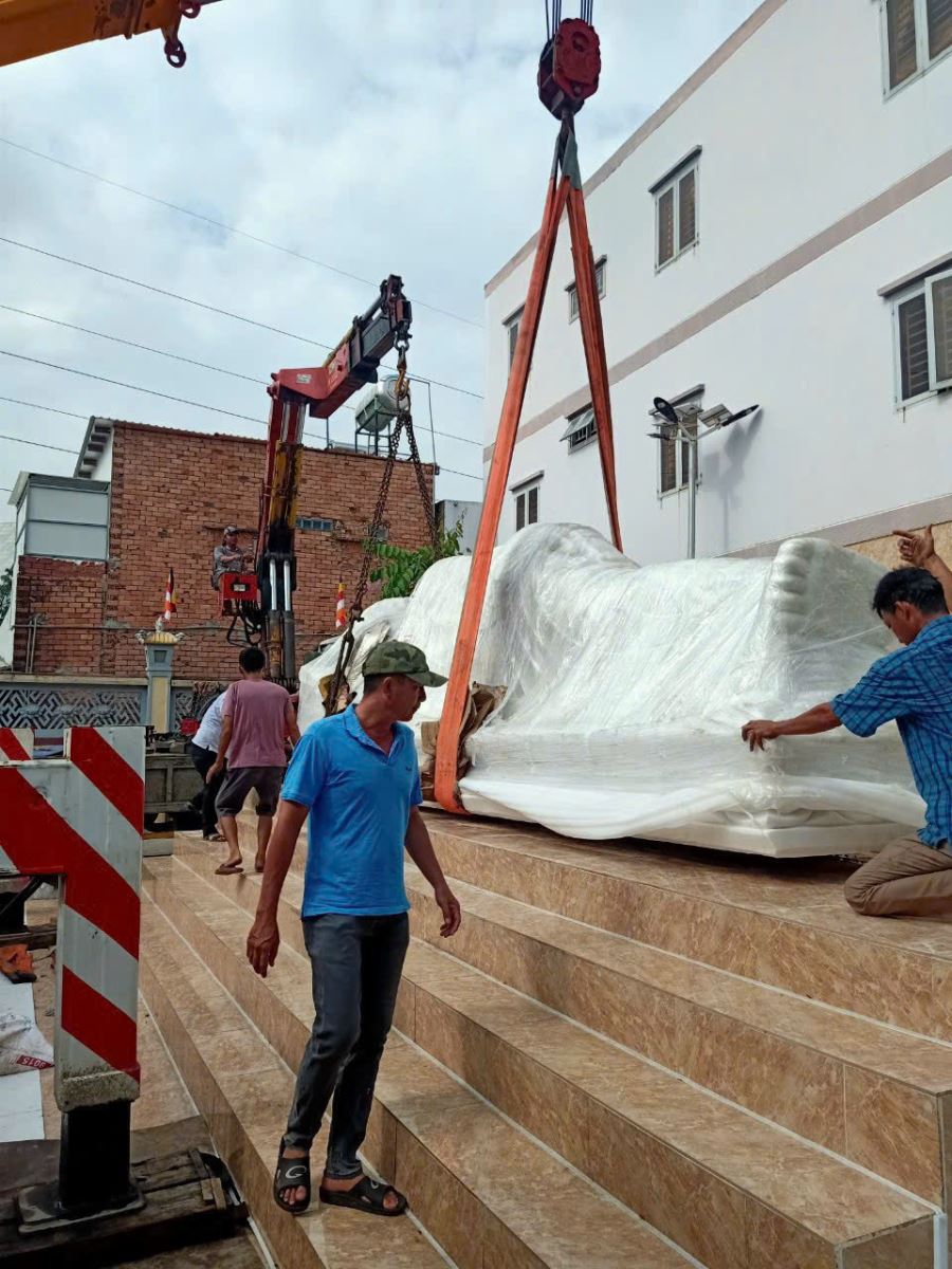 Cẩu và di dời tượng: Thực hiện an toàn, chính xác, tôn trọng không gian tâm linh.