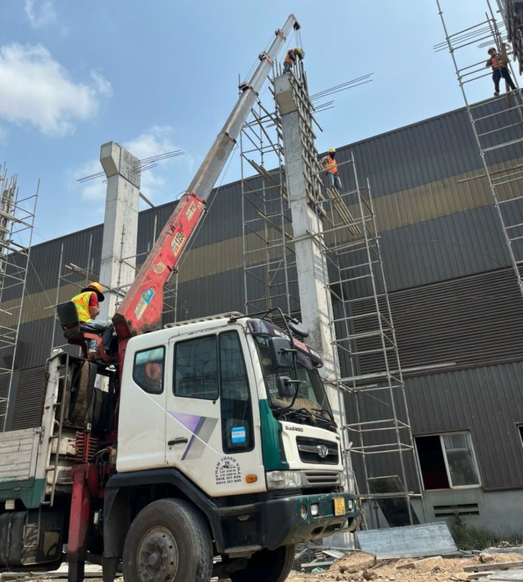 Hình ảnh xe cẩu đang hỗ trợ lắp đặt công trình
