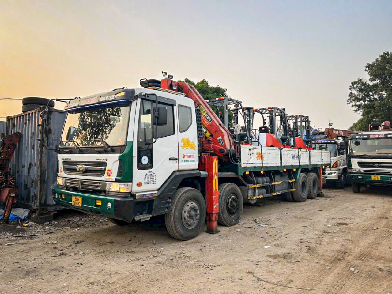 Hình ảnh xe cẩu đang chuẩn bị đi giao hàng ở các tỉnh lân cận TP.HCM