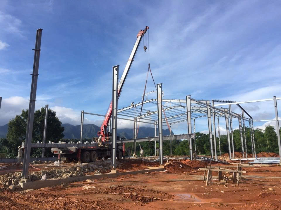 Xe cẩu tham gia lắp dựng nhà xưởng nhà tiền chế