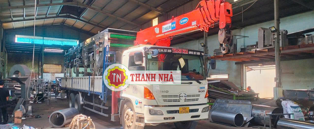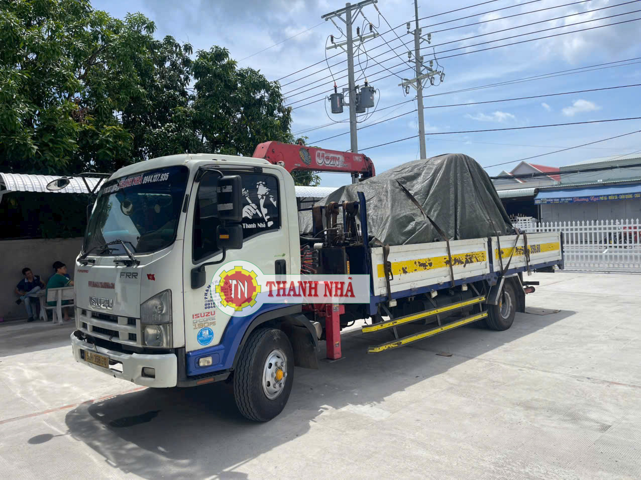 Xe cẩu Thanh Nhã đang vận chuyển các thiết bị