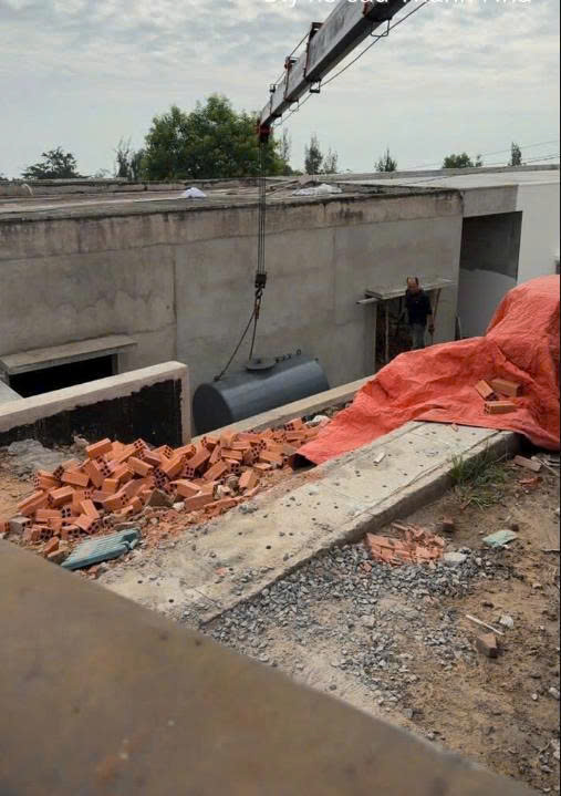 Hạ bồn chứa vào vị trí lắp đặt theo bản vẽ kỹ thuật