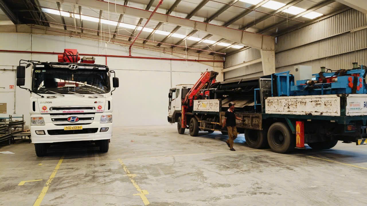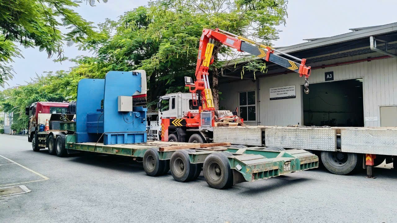 Cho thuê xe cẩu vận chuyển, lắp đặt máy tại KCN Hoà Bình, Long An