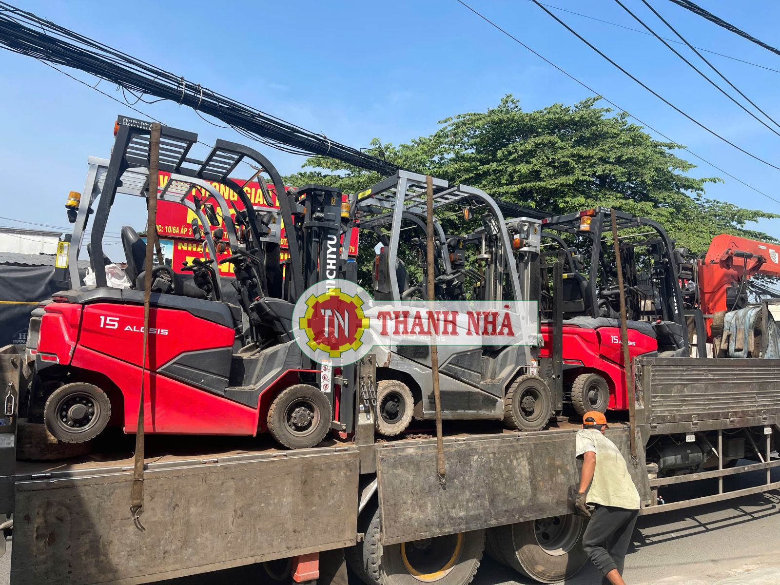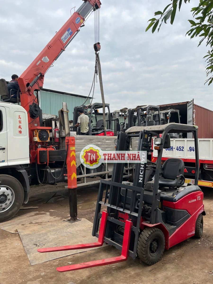 Xe cẩu Thanh Nhã vận chuyển lô xe nâng hàng Nichiyu 1.5 Tấn