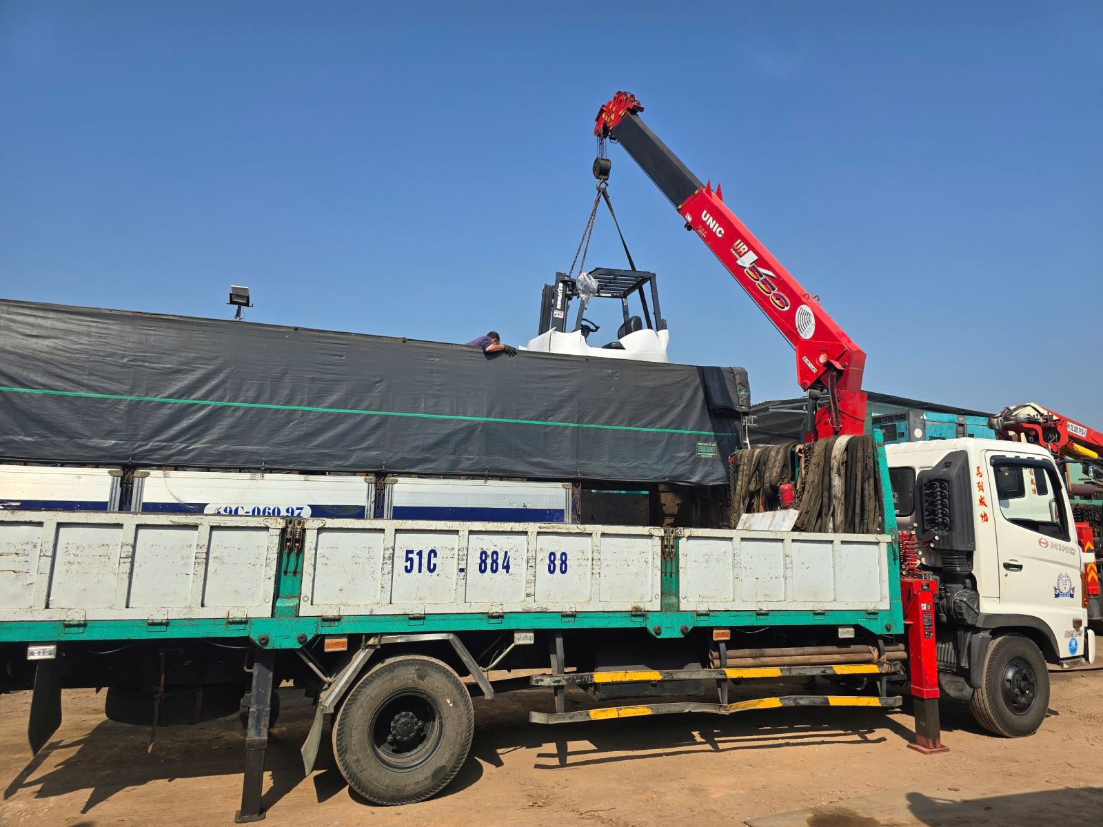 - Xe vận chuyển nhanh chóng đến địa điểm cần cẩu hàng, nhân viên chuyên nghiệp, thao tác nhanh và chính xác.