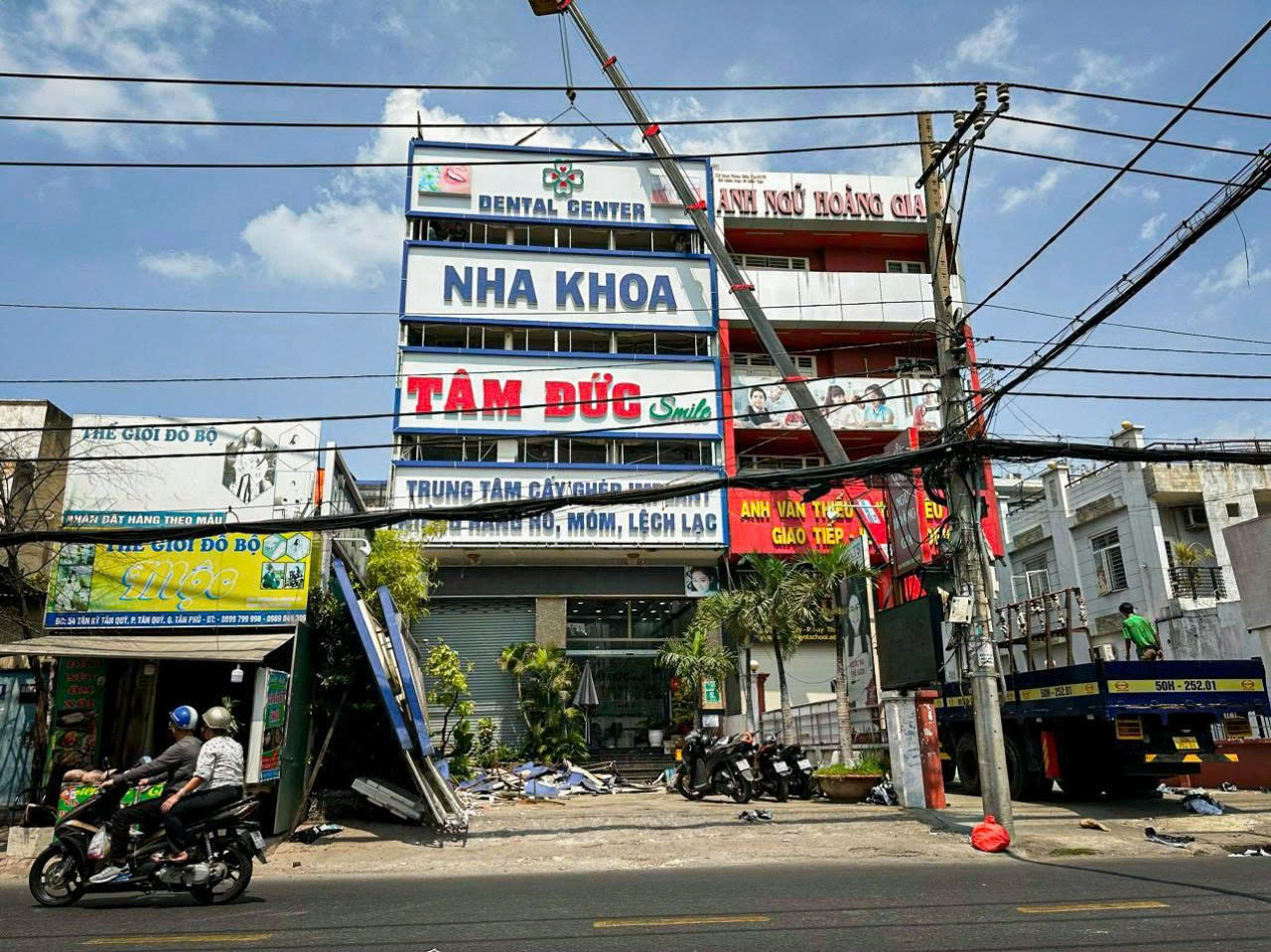 Xe cẩu Thanh Nhã đang hỗ trợ lắp đặt biển quảng cáo