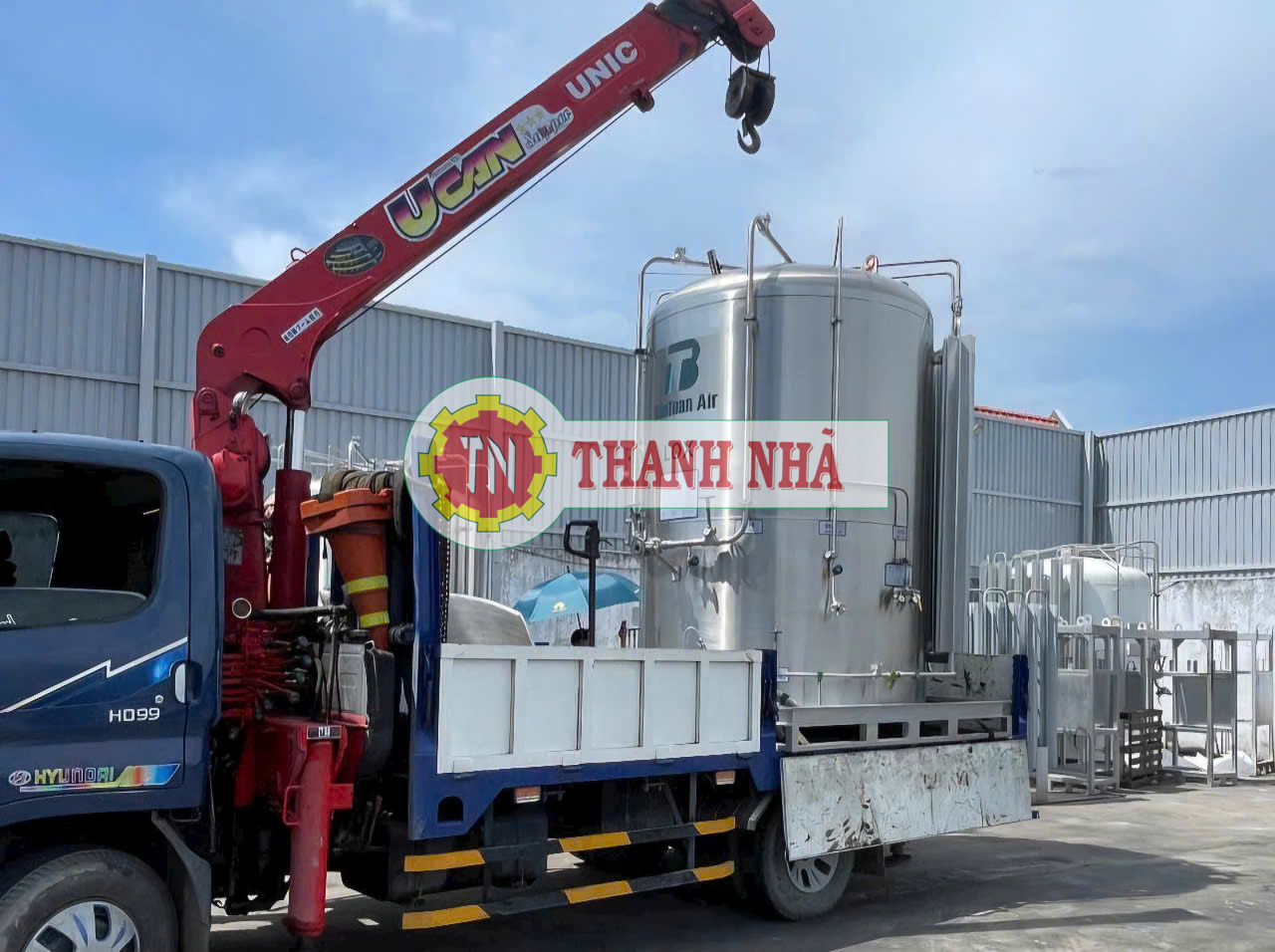 Hình ảnh xe cẩu vận chuyển bồn chứa khí công nghiệp