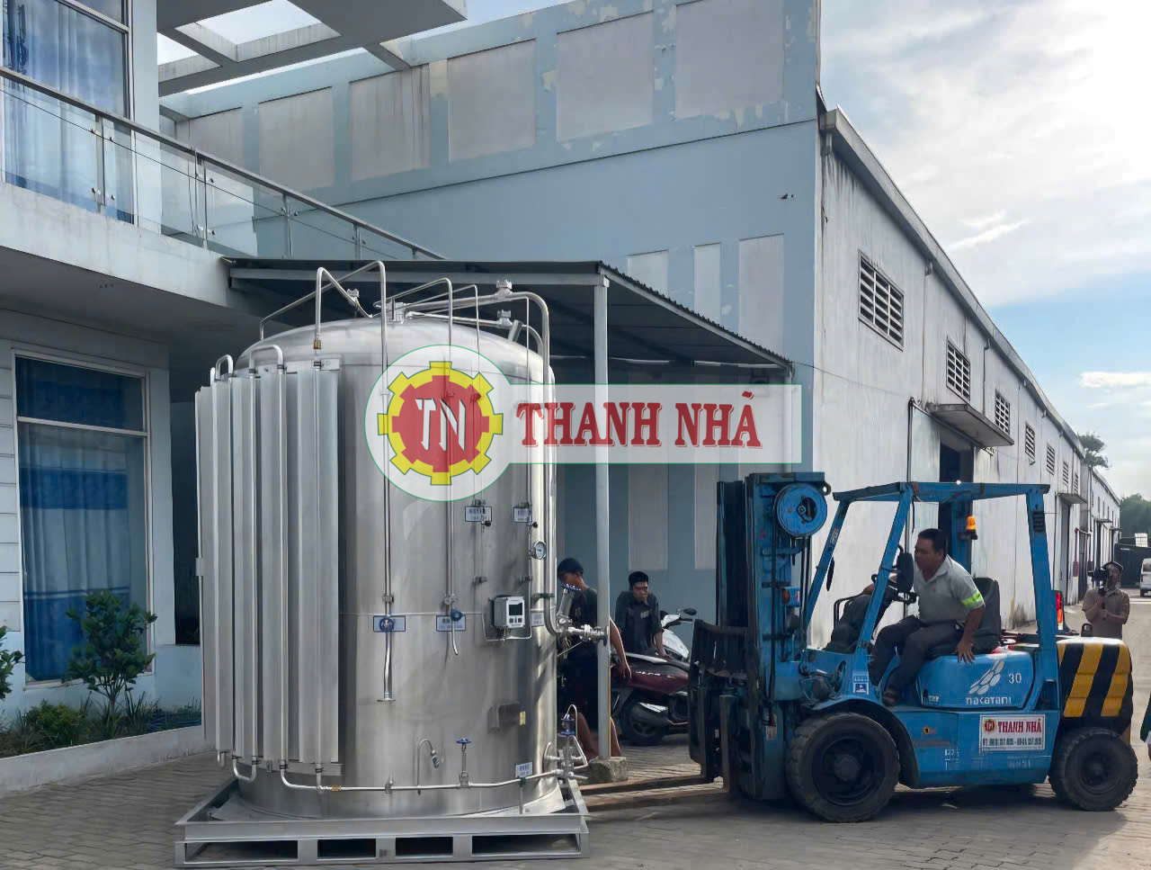 Hình ảnh xe nâng hỗ trợ nâng hạ bồn chứa khí công nghiệp