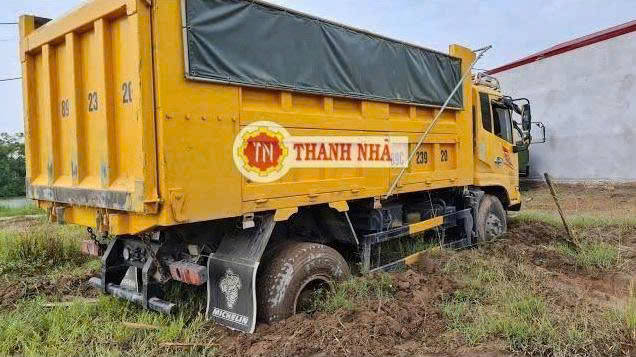 Một buổi chiều sau trận mưa lớn, tại công trình xây dựng nhà xưởng ở tỉnh Trà Vinh, xe tải chở thép nặng gần 10 tấn cố gắng lùi vào công trình để dỡ hàng. Không may, đoạn đường này đất còn chưa được gia cố dẫn đến bị sụt lún, khiến bánh xe sau lún sâu vào trong lớp bùn hơn 40cm.