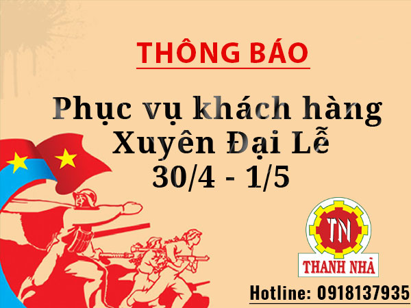 Nhằm phục vụ khách hàng trong suốt kỳ đại lễ Giỗ tổ Hùng Vương, tri ân vua Hùng, Giải phóng Miền Nam, thống nhất đất nước và Quốc tế Lao động năm 2023, NANGCAUTHANHNHA.COM xin thông báo lịch làm việc XUYÊN SUỐT từ ngày 29 tháng 04 đến mồng 03 tháng 05 năm 2023.