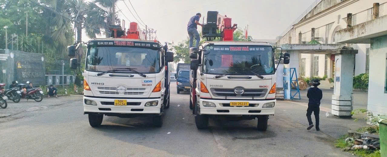 Hình ảnh 2 chiếc xe cẩu Thanh Nhã làm việc tại Bình Chánh, TP.HCM